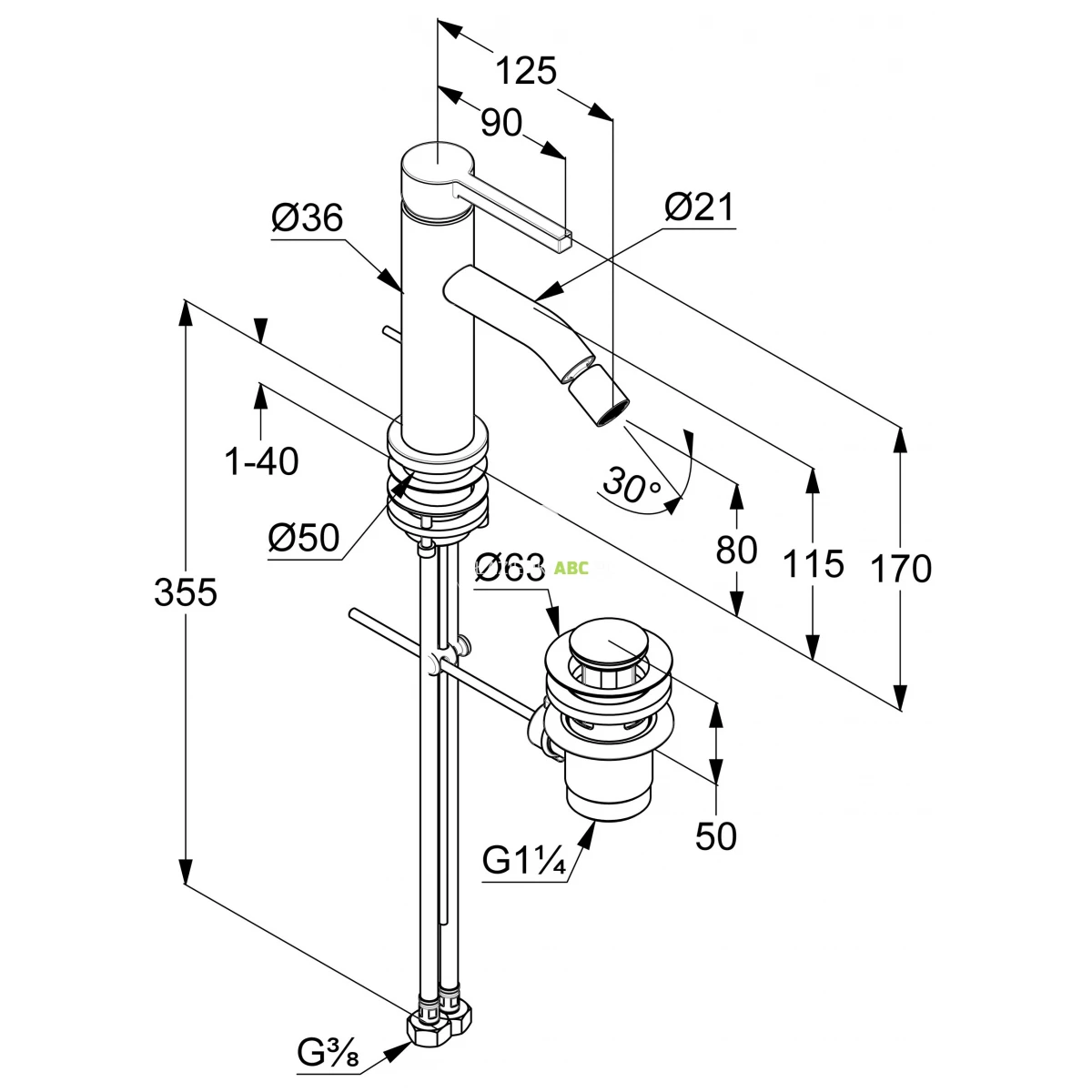 | Zasięg wylewki | 125 mm |