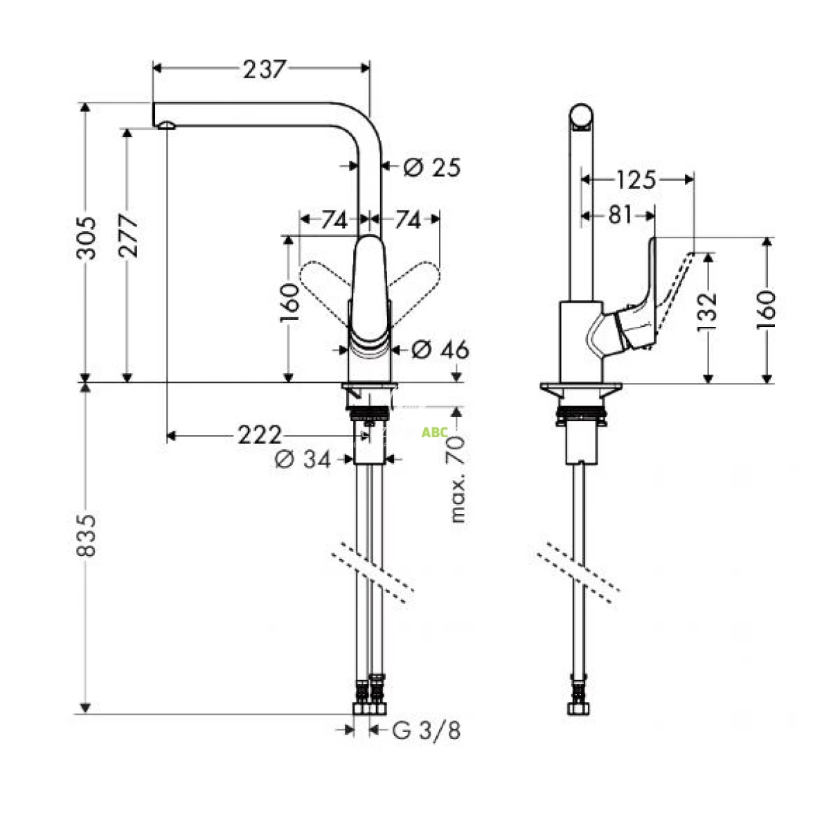 | Typ wężyków przyłączeniowych | Elastyczne wężyki ciśnieniowe |