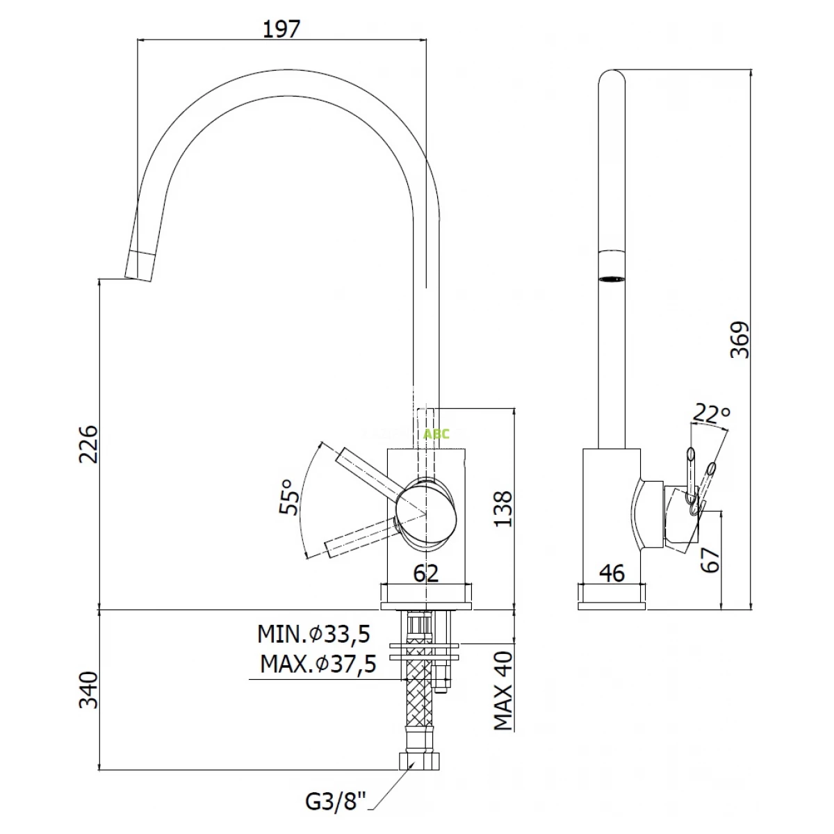 | Typ wężyków przyłączeniowych | Elastyczne wężyki ciśnieniowe |