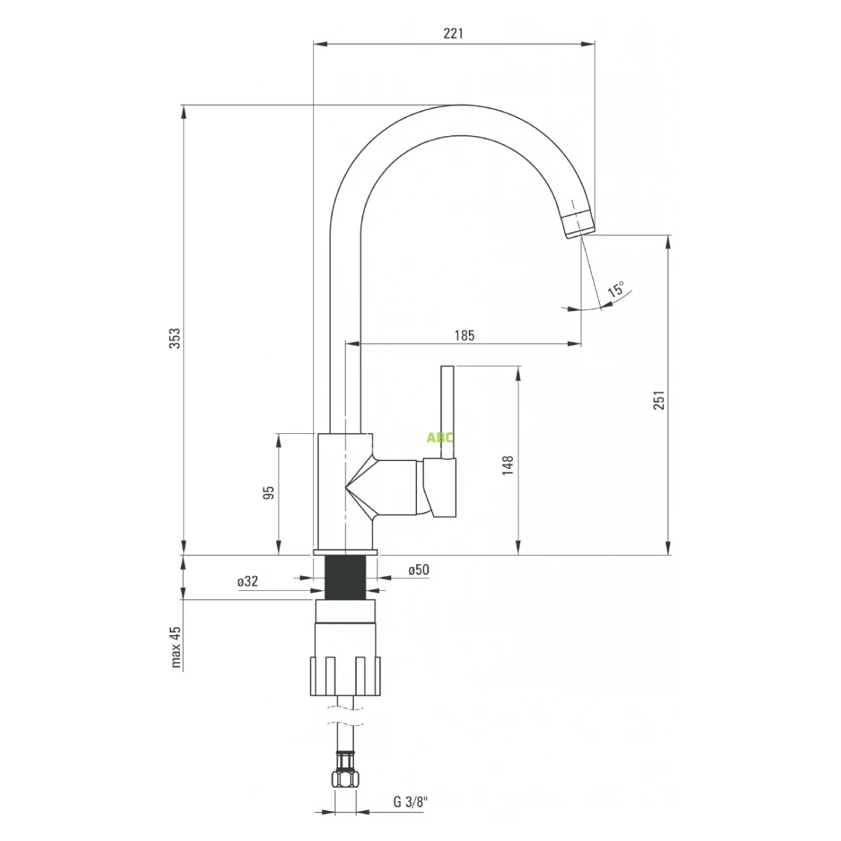 | Zasięg wylewki | 189 mm |
