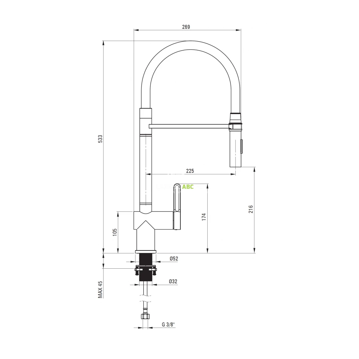 | Zasięg wylewki | 225 mm |