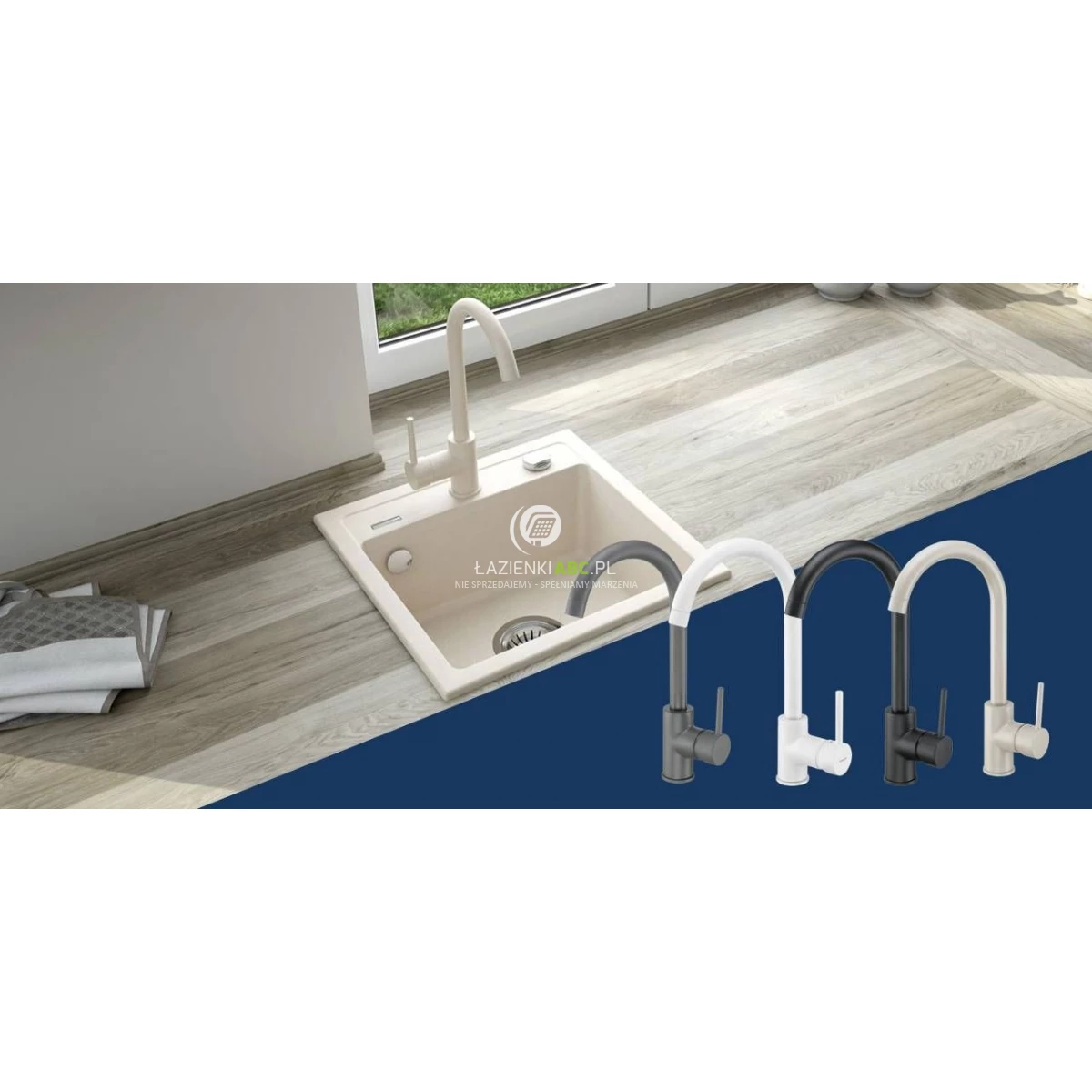 Coraz większą popularnością w kuchni cieszą się czarne baterie kuchenne, które powoli wypierają klasyczną armaturę w wykończeniu chromowym. Dlaczego jednak nie zaryzykować i nie postawić na nieco odważniejszą kolorystykę? Z odpowiedzią spieszy seria NEMEZJA, czyli seria baterii kuchennych, które występują w takich wariantach wykończeniowych: alabaster, grafit metalik, antracyt. Biel wersji alabaster dobrze wkomponuje się w nowoczesną, jasną kuchnię. Grafit to najbardziej uniwersalne rozwiązanie, a antracyt sprawdzi się w przestronnych salonach kuchennych lub wnętrzach w stylu loft.