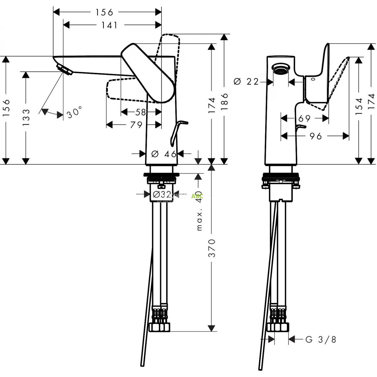 Bateria umywalkowa 150 + korek Hansgrohe TALIS E 71754670 czarny mat