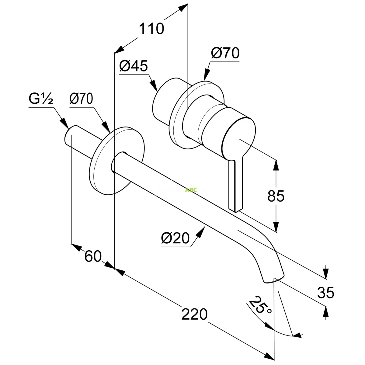 | Zasięg wylewki | 220 mm |