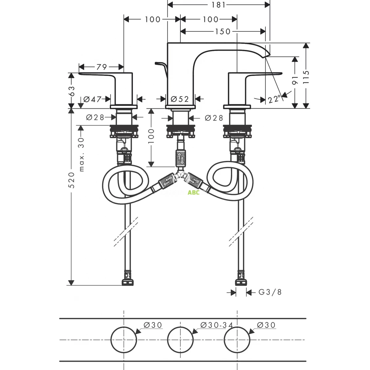 | Dodatkowe funkcje (3) | Hansgrohe ComfortZone100 – większa przestrzeń dla wygodnego mycia rąk |