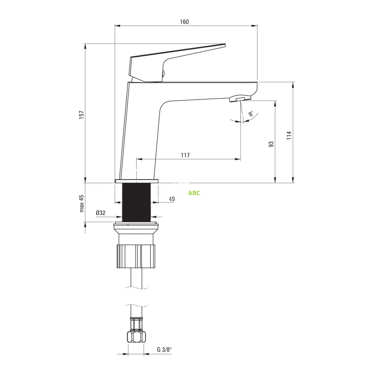| Zasięg wylewki | 117 mm |