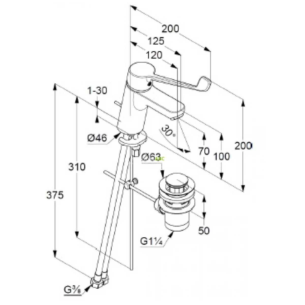 | Zasięg wylewki | 125 mm |
