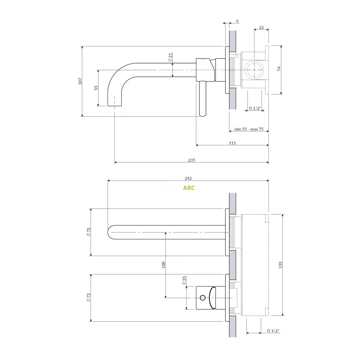 | Zasięg wylewki | 185 mm |