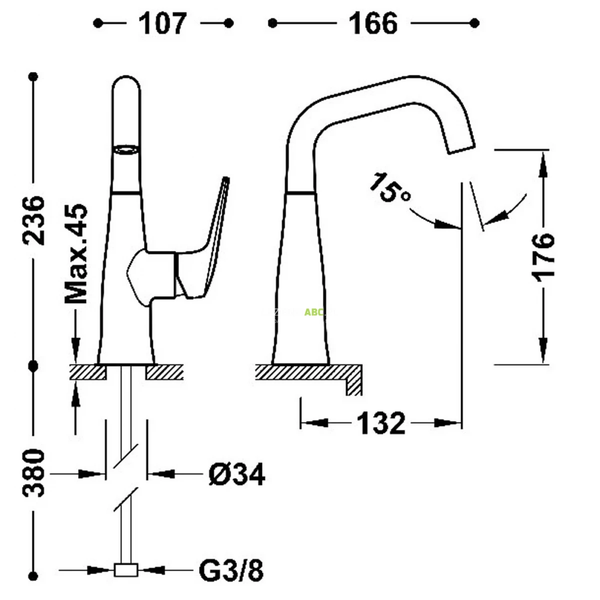 | Rodzaj podłączenia | Elastyczne wężyki ciśnieniowe G 3/8 |