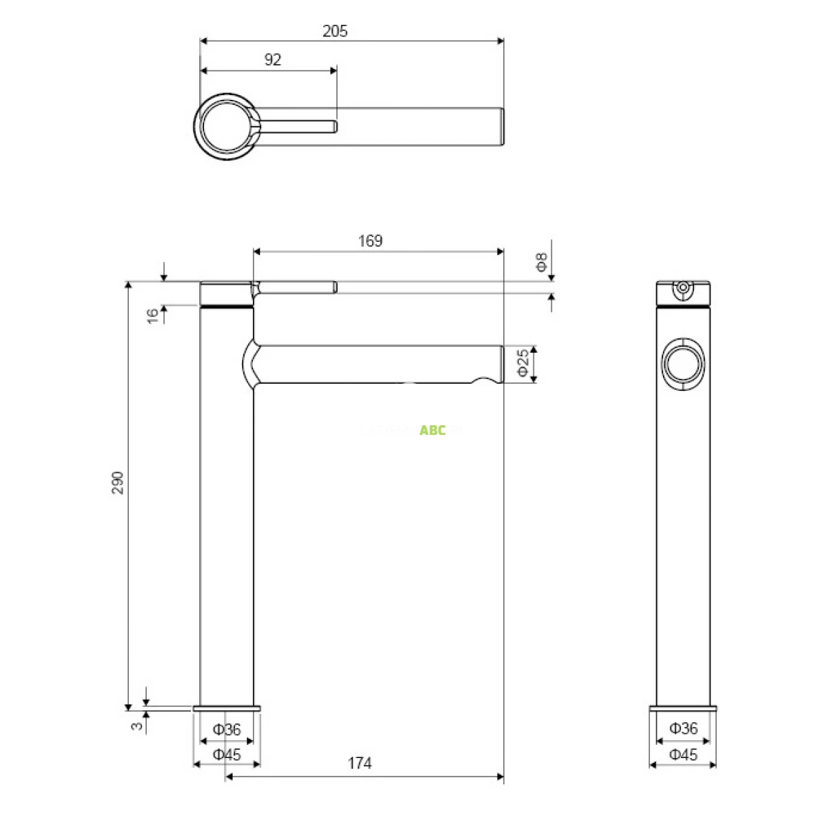 Korpus baterii umywalkowej wysokiej Pi wykonany jest z jednolitego mosiężnego odlewu, dzięki temu bateria nie posiada żadnych linii łączenia. Technologicznie jest to dużo trudniejsze do uzyskania od łączonych niezależnych dwóch elementów, jednak niesie dużą funkcjonalność: bateria jest bardziej szczelna oraz wizualnie spoista. Uroku dodaje niski uchwyt, który skrywa głowicę Kerox w postaci „joysticka”. Zastosowany perlator Neoperl Slim jest prawie niewidoczny dzięki ukryciu go we wnętrzu wylewki.
