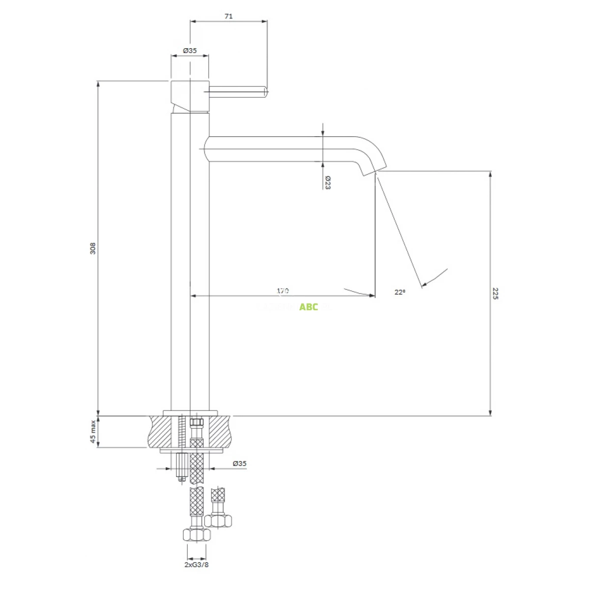 | Zasięg wylewki | 170 mm |