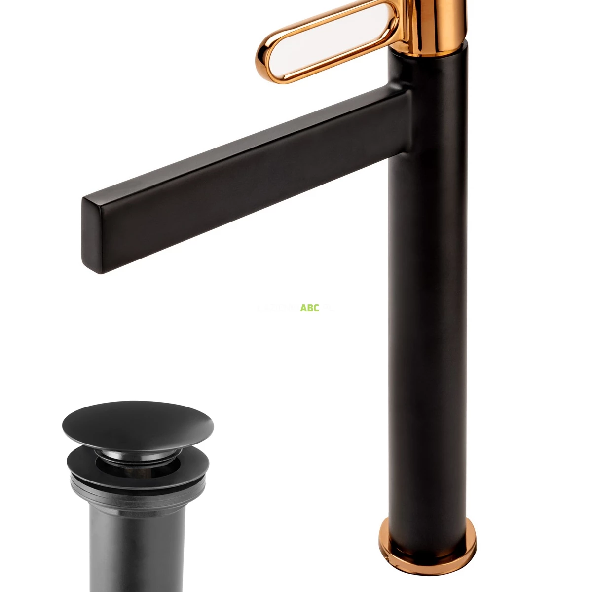 Bateria umywalkowa wysoka z korkiem klik-klak FDesign ZAFFIRO FD1-ZFR-2L-25 różowe złoto/czarna wyprzedaż