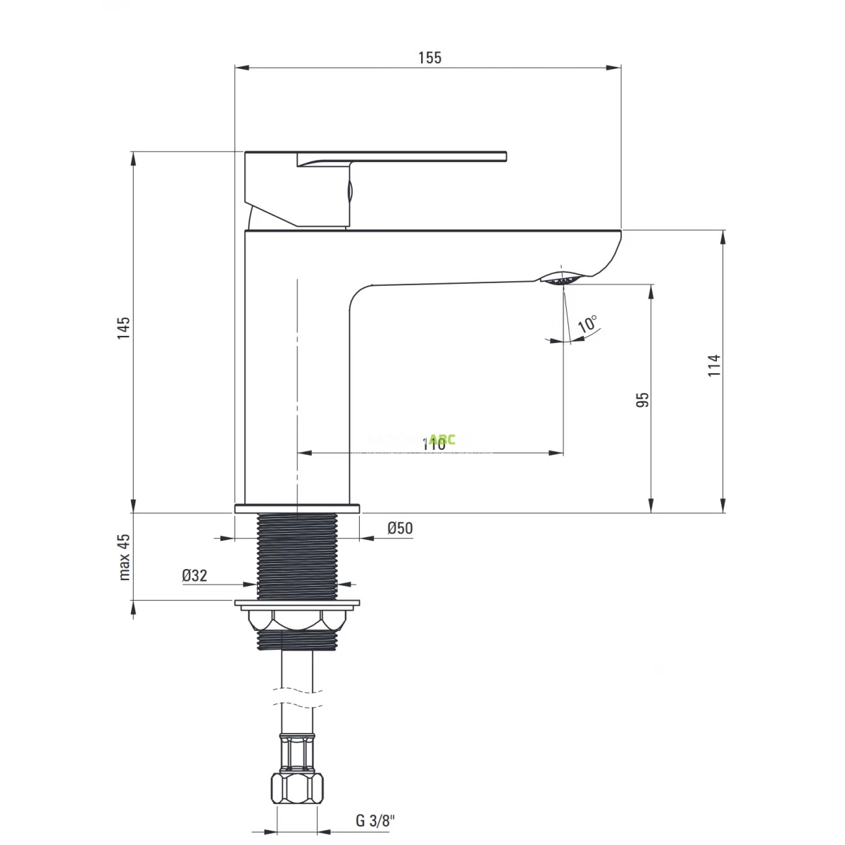 | Zasięg wylewki | 110 mm |
