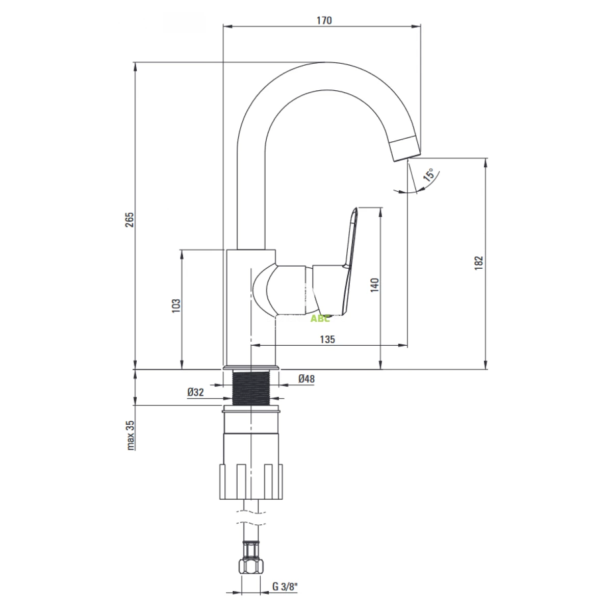 | Zasięg wylewki | 135 mm |