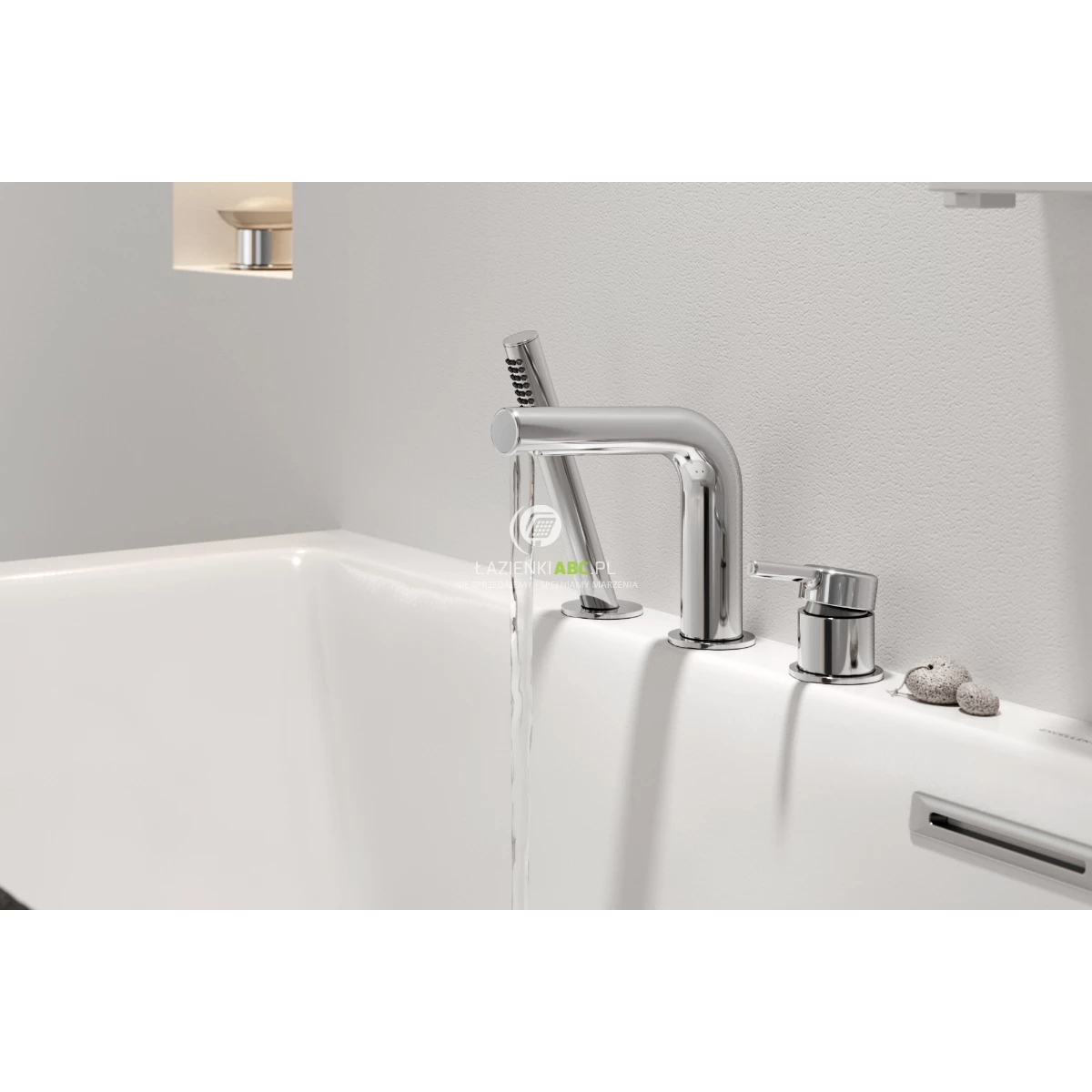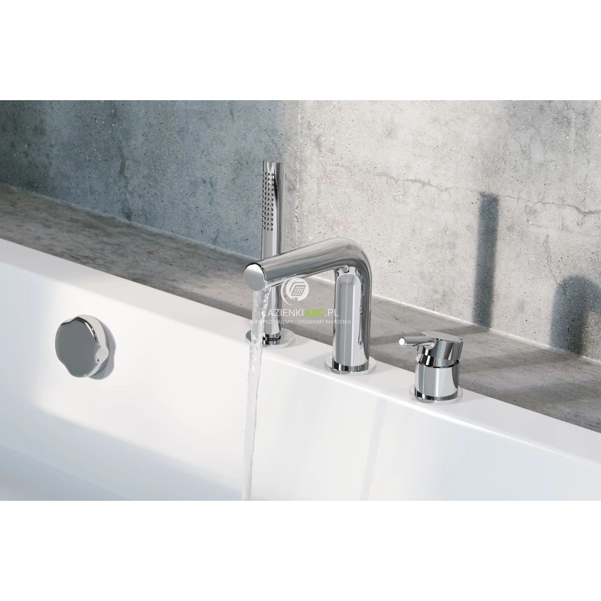 Bateria nawannowa 3-otworowa wykonana jest z mosiądzu, posiada wylewkę o zasięgu 174 mm i może być stosowana również jako bateria montowana na cokole obok wanny, o ile szerokość i wysokość rantu na to pozwala. Do każdej baterii wannowej dołączone są 2 rodzaje uchwytów słuchawki prysznicowej: kątowy (60⁰) oraz prosty, dobrane kolorystycznie do koloru baterii. Przełącznik ciśnieniowy umieszczony jest pod wylewką. Bateria może być instalowana na rancie o grubości do 40 mm oraz szerokości 80mm, który pozwoli na użycie rozet o średnicy 60 mm.