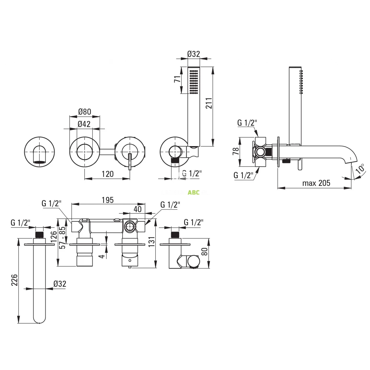 | Zestaw natryskowy | Z uchwytem punktowym |