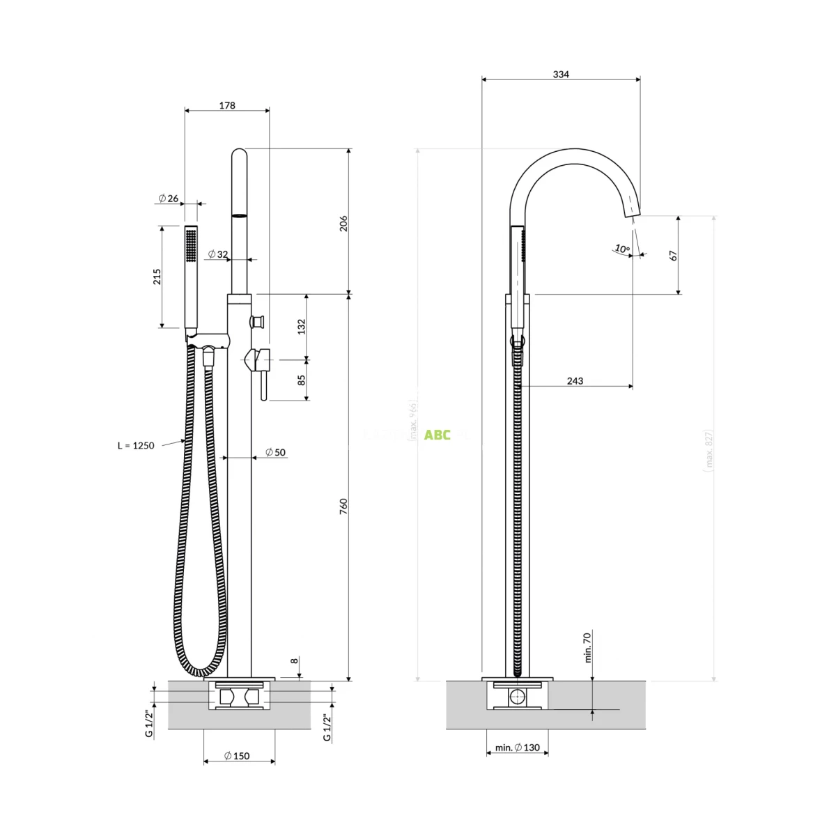 | Zasięg wylewki | 243 mm |