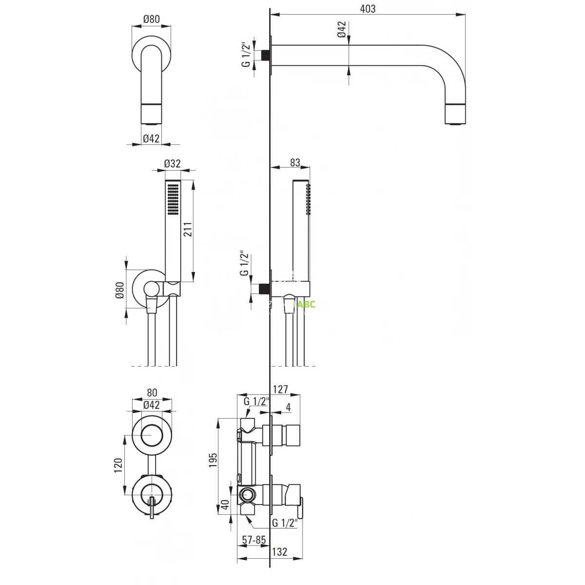 | Zestaw natryskowy | Z uchwytem punktowym |