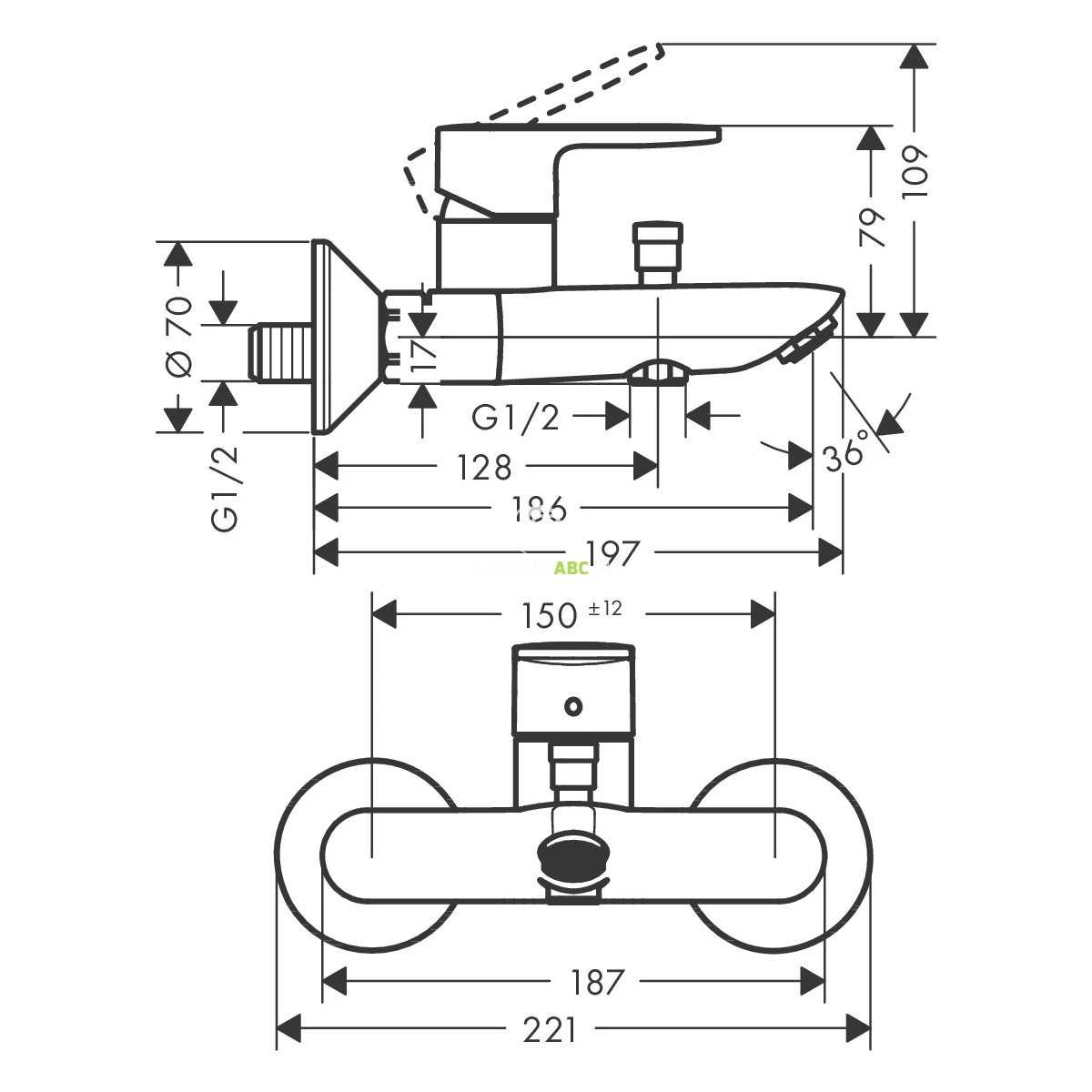 | Zasięg wylewki | 186 mm |