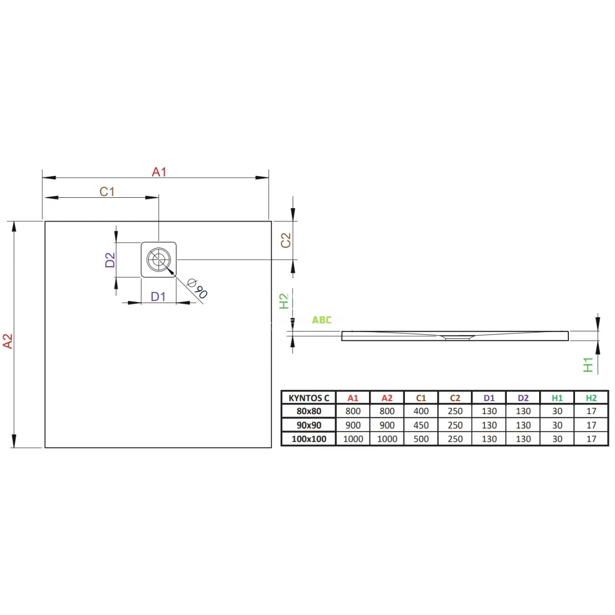 | Kształt | Kwadratowy |
