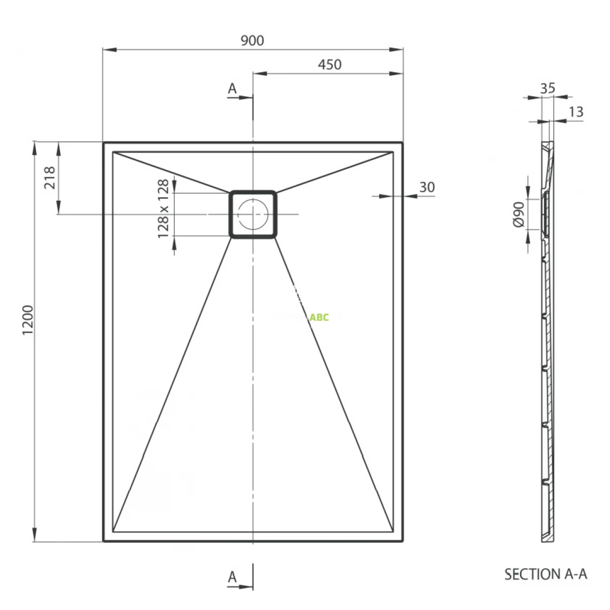 | Wariant | Z odpływem na środku krótszego boku |