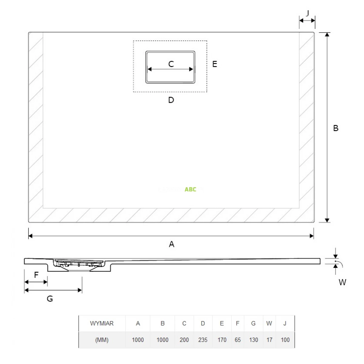 | Rozmiar brodzika | 100 x 100 x 1,5 |