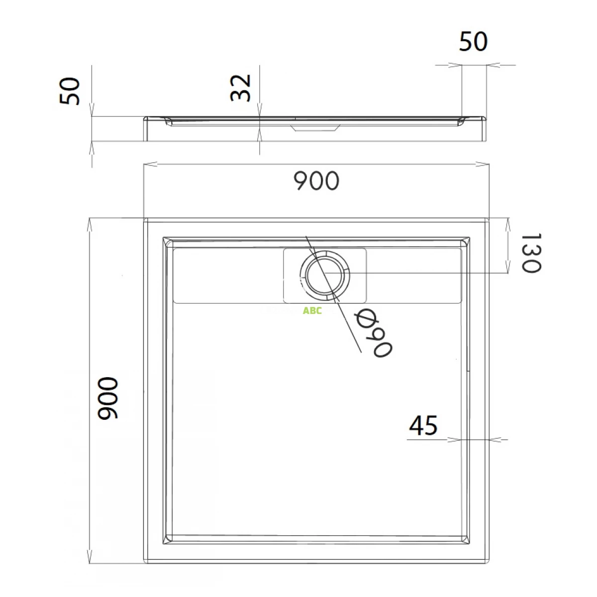 | Średnica otworu odpływowego | 90 mm |