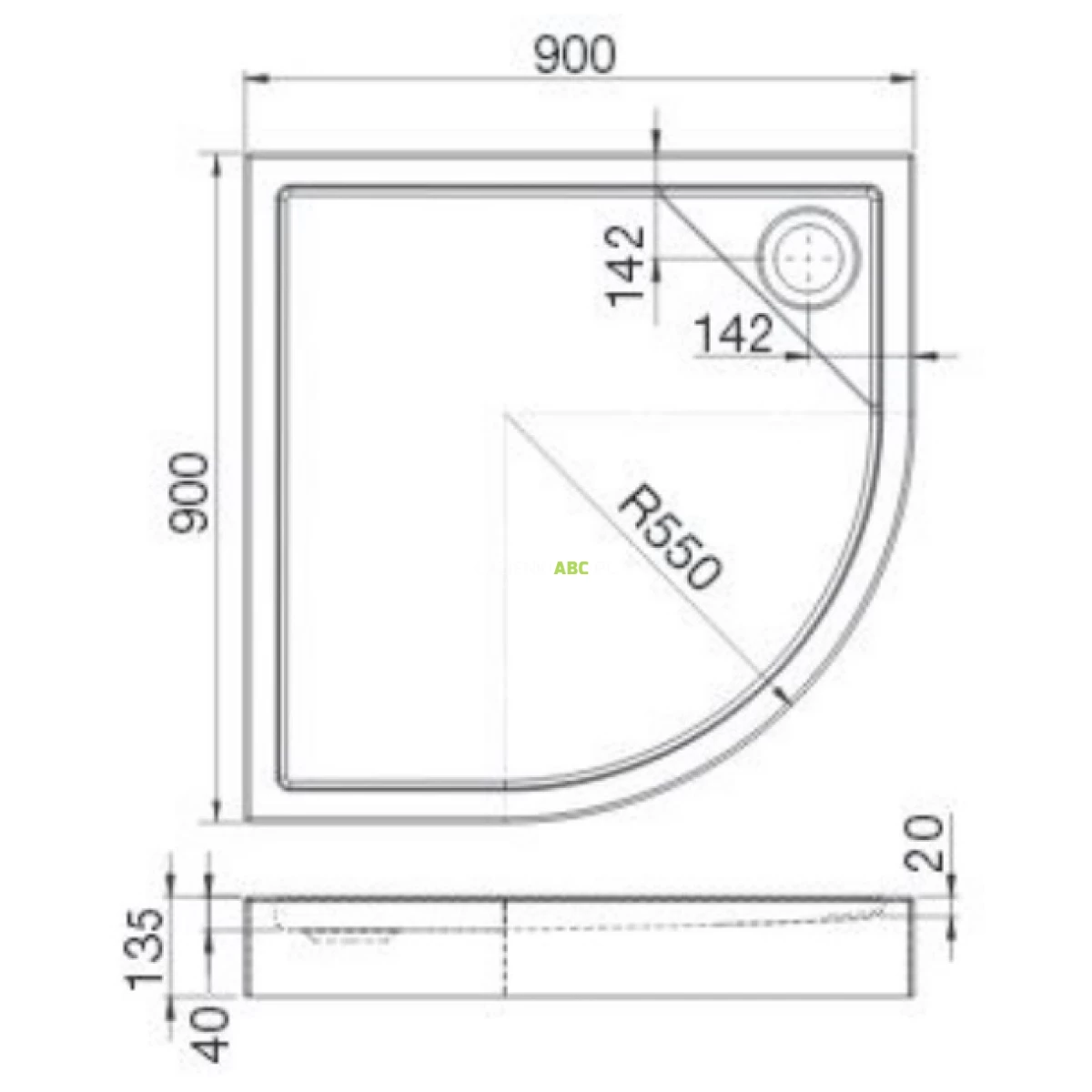 Brodzik półokrągły 90 cm / 13 cm Roca MALAGA COMPACT A276260000