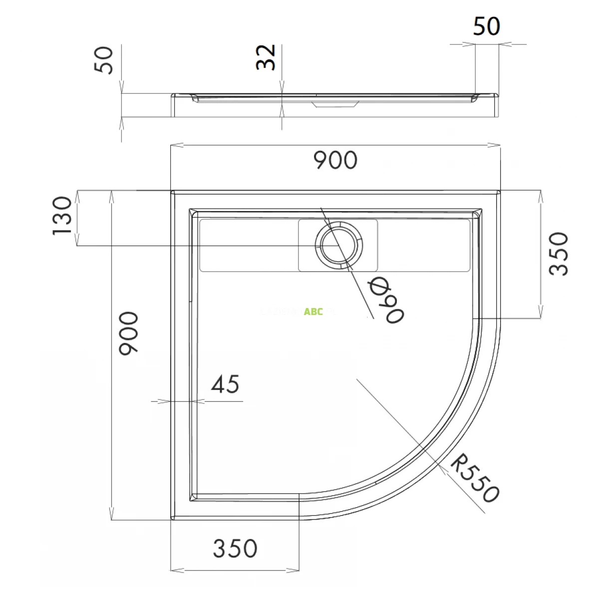 | Średnica otworu odpływowego | 90 mm |