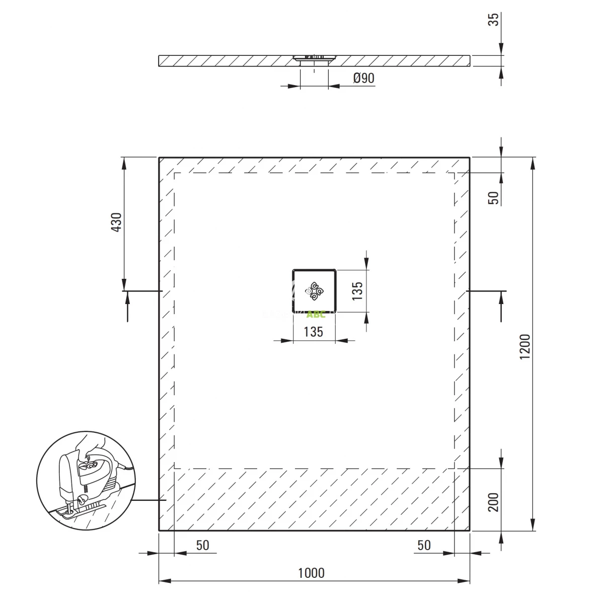 | Wariant | Z odpływem na środku krótszego boku |