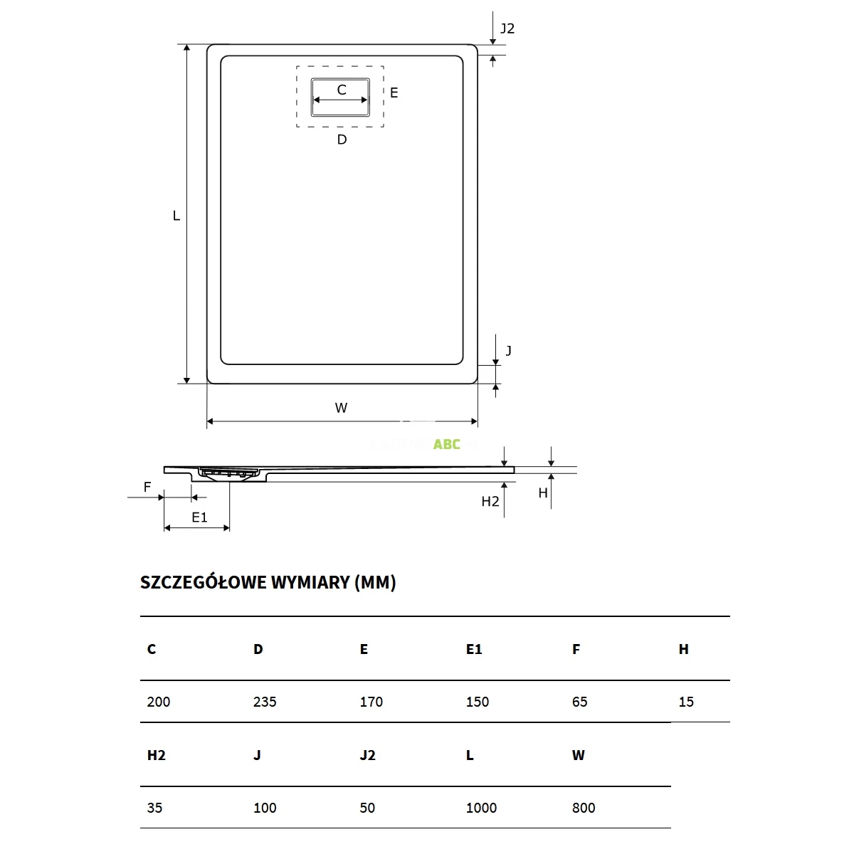 | Rozmiar brodzika | 80 x 100 x 1,5 |