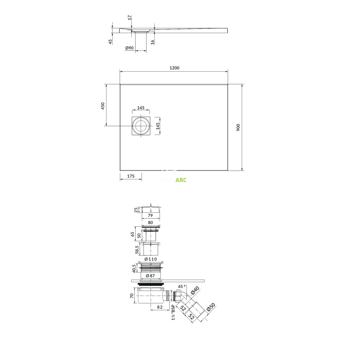 | Średnica otworu odpływowego | 90 mm |
