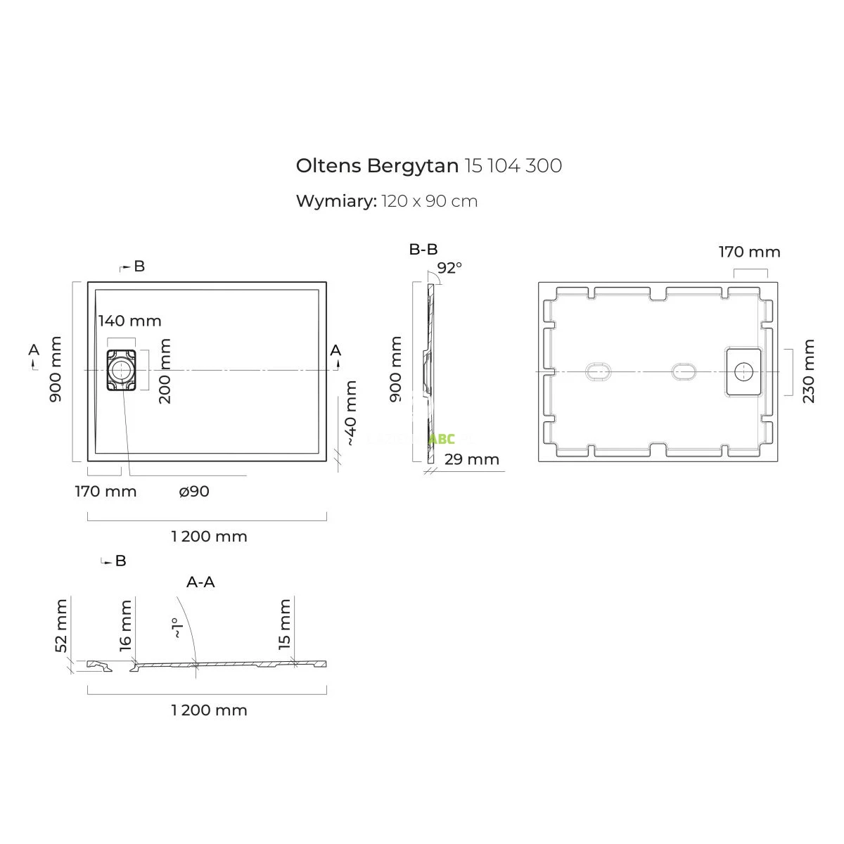 | Średnica otworu odpływowego | 90 mm |