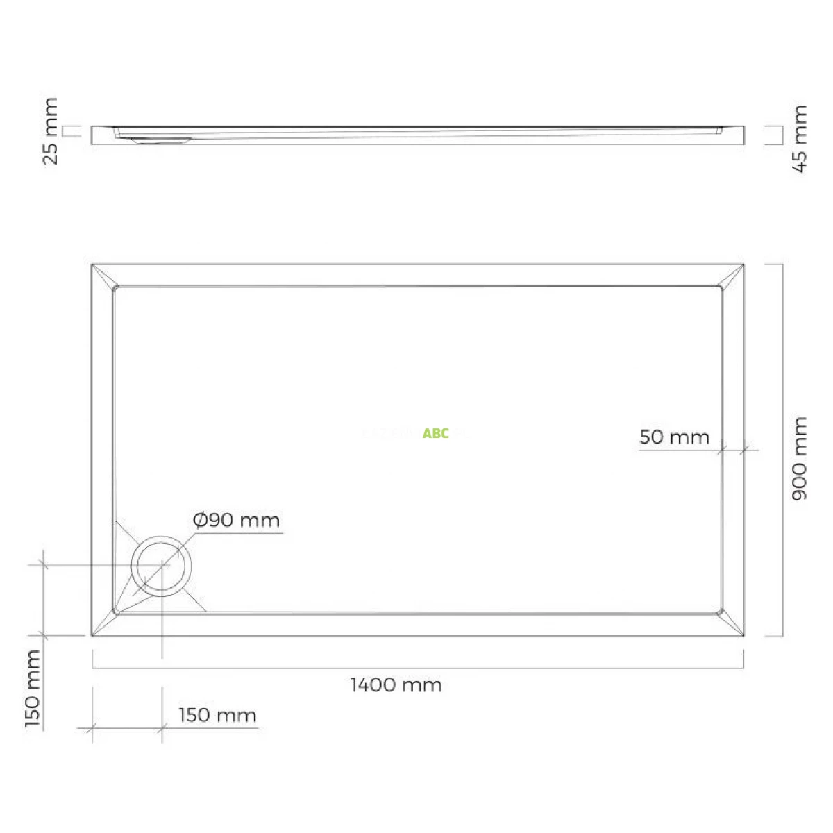 | Średnica otworu odpływowego | 90 mm |