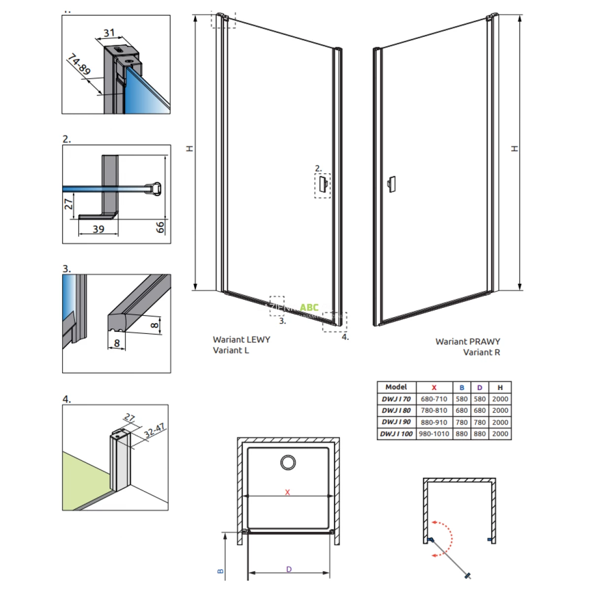 | Typ | Drzwi prysznicowe |