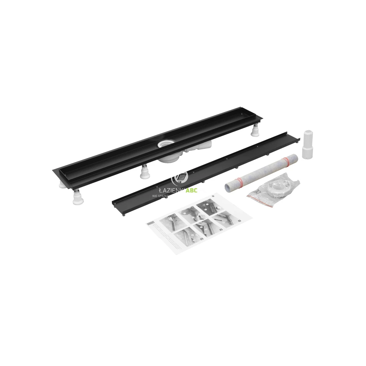 Czarny odpływ liniowy 60 cm z rusztem do zabudowy Schedpol BASE-LOW BLACK OLP60/CST-LOW