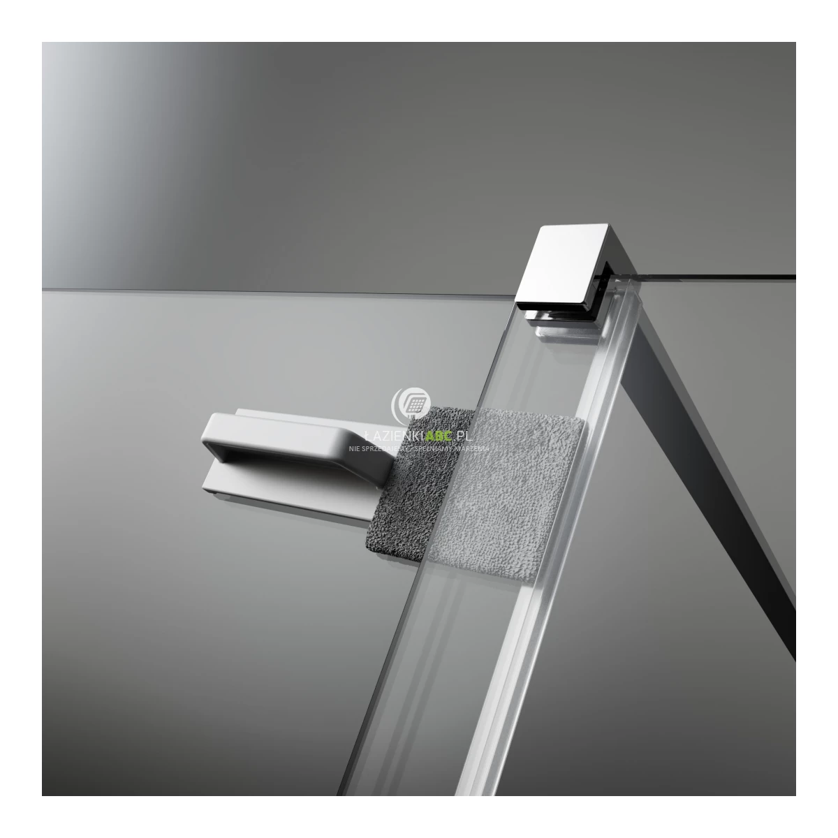 Kabina prysznicowa wyposażona jest w uchwyt stabilizujący z innowacyjnym systemem, który spowalnia bieg drzwi.