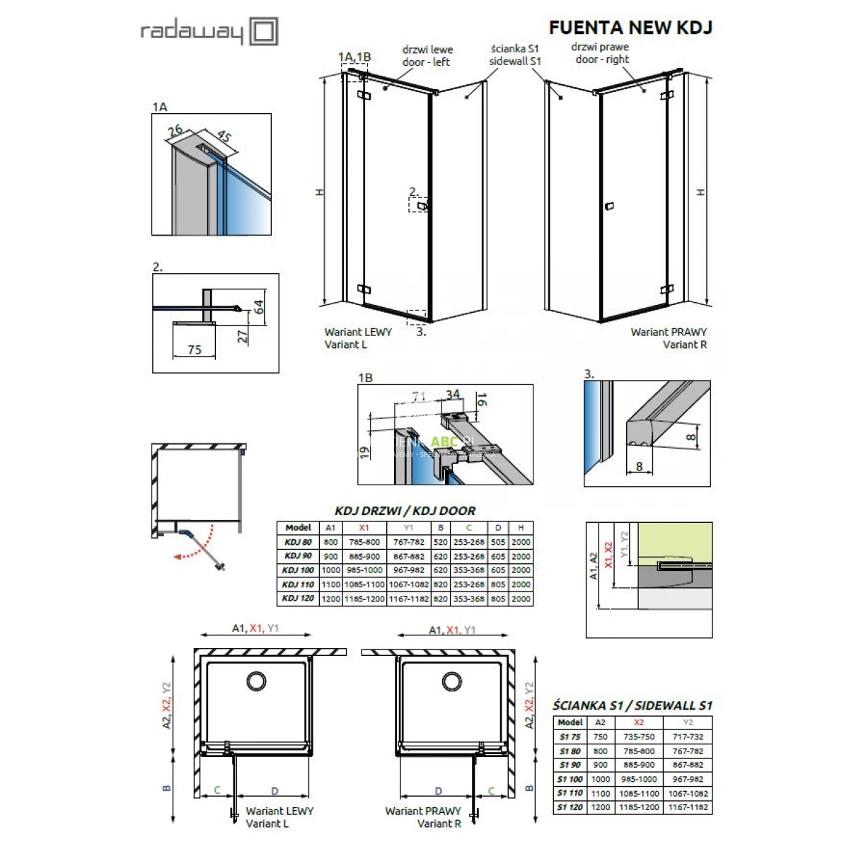 Uwaga! Wymiar kabiny dopasowany jest do montażu na brodziku o standardowym rozmiarze. W rzeczywistości kabina jest mniejsza. Jeśli planujesz montaż kabiny bezpośrednio na posadzce, zwróć uwagę na wymiary do osi szyby (Y1, Y2).