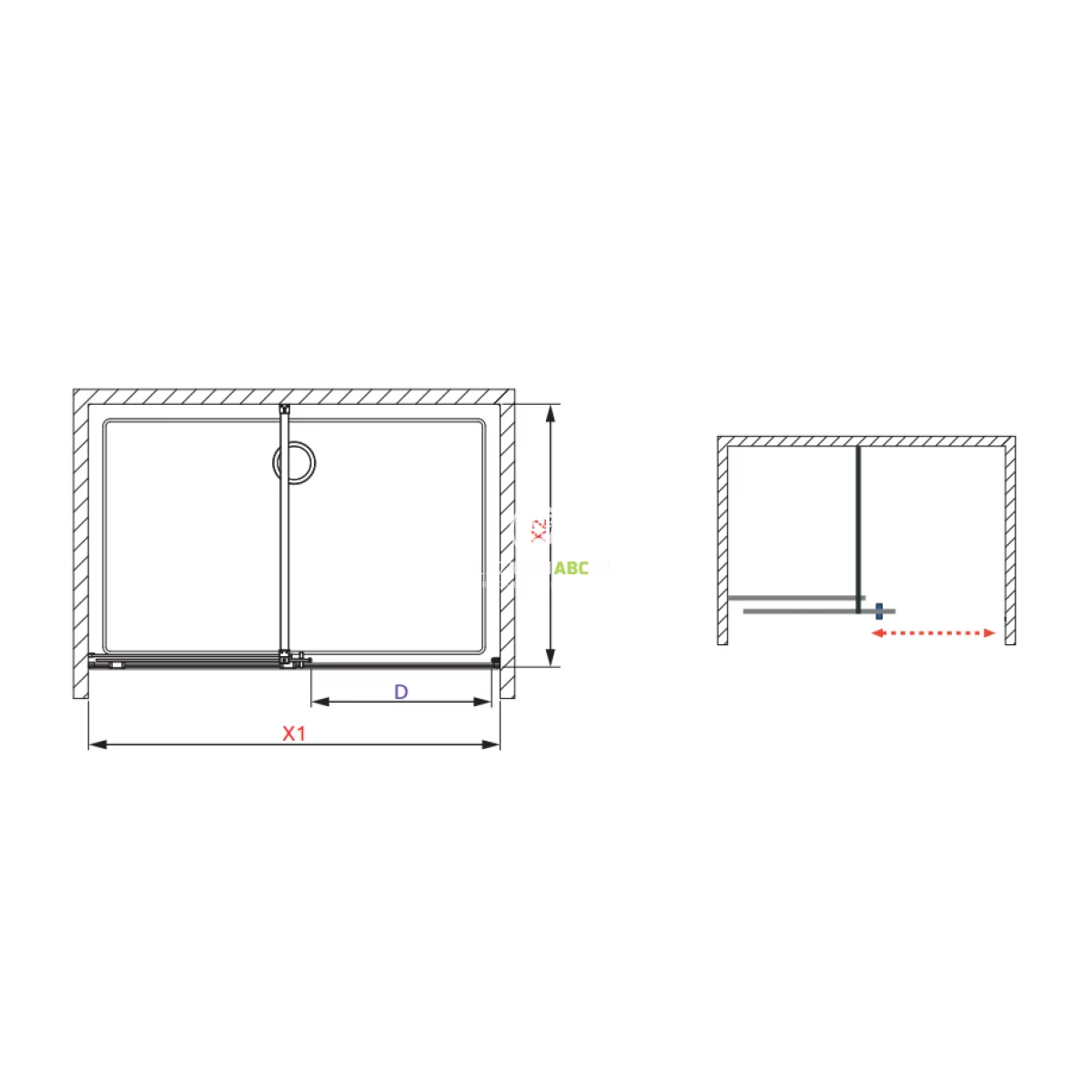 Uwaga! Wymiar kabiny dopasowany jest do montażu na brodziku o standardowym rozmiarze. W rzeczywistości kabina jest mniejsza. Jeśli planujesz montaż kabiny bezpośrednio na posadzce, zwróć uwagę na wymiary do osi szyby (Y1, Y2).