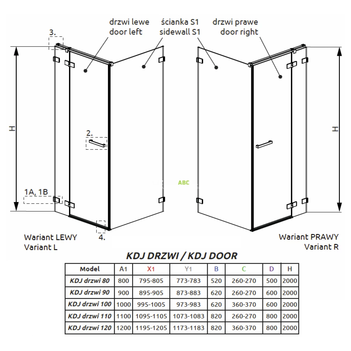 Uwaga! Wymiar kabiny dopasowany jest do montażu na brodziku o standardowym rozmiarze. W rzeczywistości kabina jest mniejsza. Jeśli planujesz montaż kabiny bezpośrednio na posadzce, zwróć uwagę na wymiary do osi szyby (Y1, Y2).