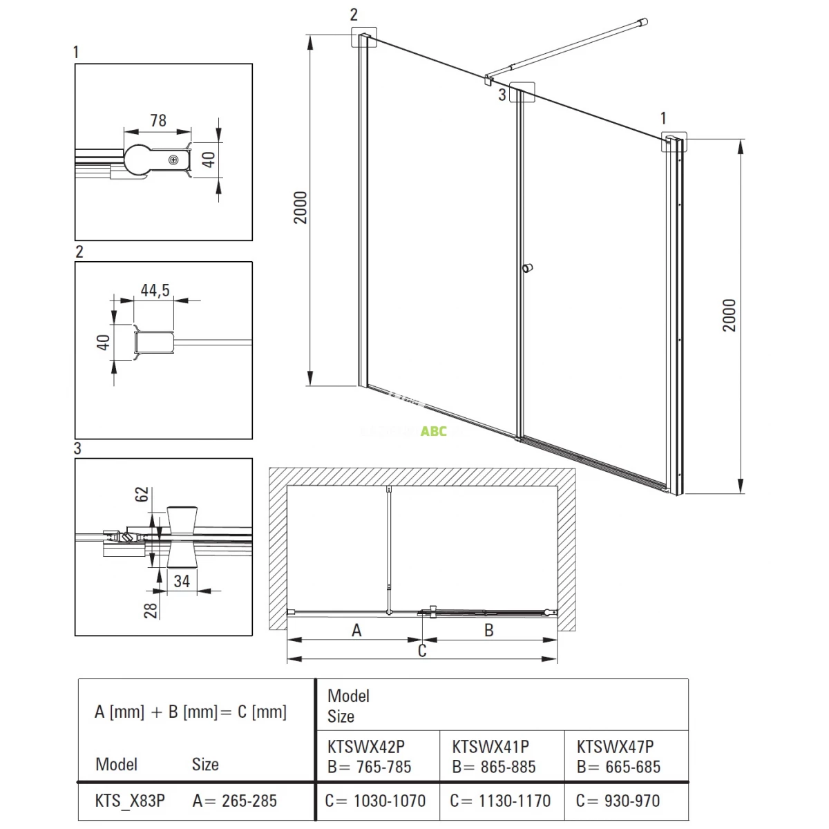 | Wariant | Drzwi 80cm + ścianka 30cm |