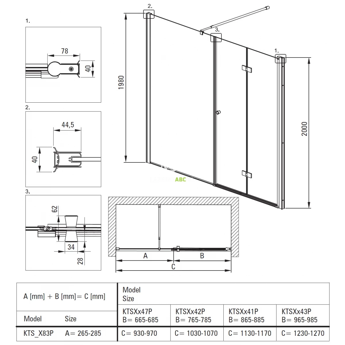 | Typ | Drzwi prysznicowe + ścianka |