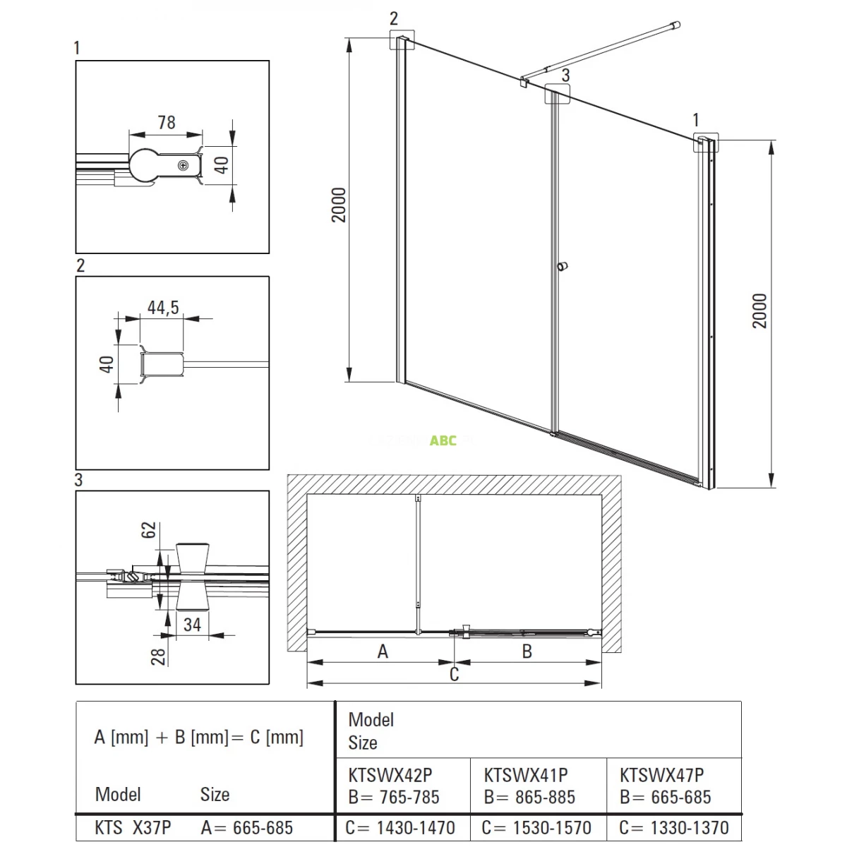 | Typ | Drzwi prysznicowe + ścianka |