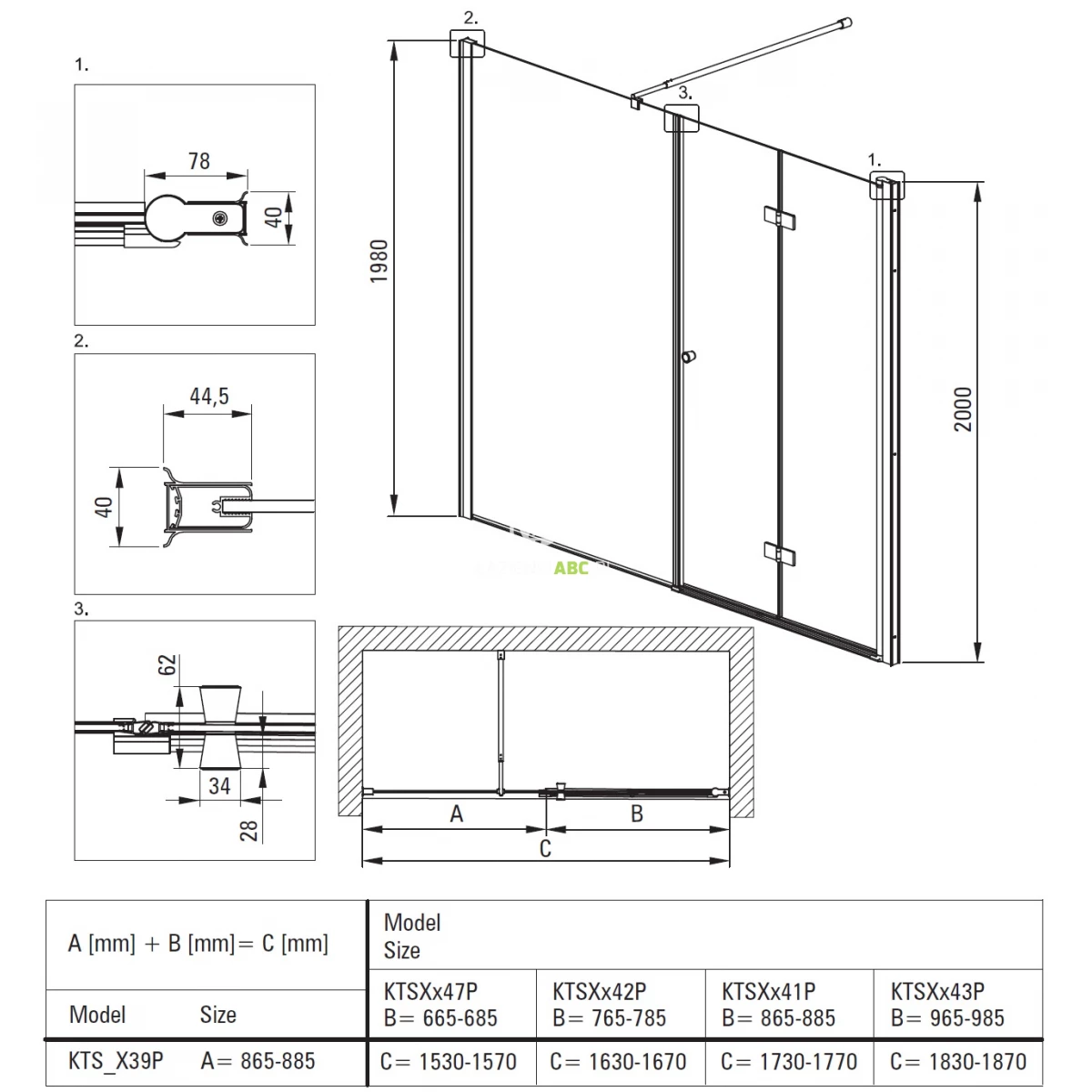 | Wariant | Ścianka 90cm + drzwi 80cm |