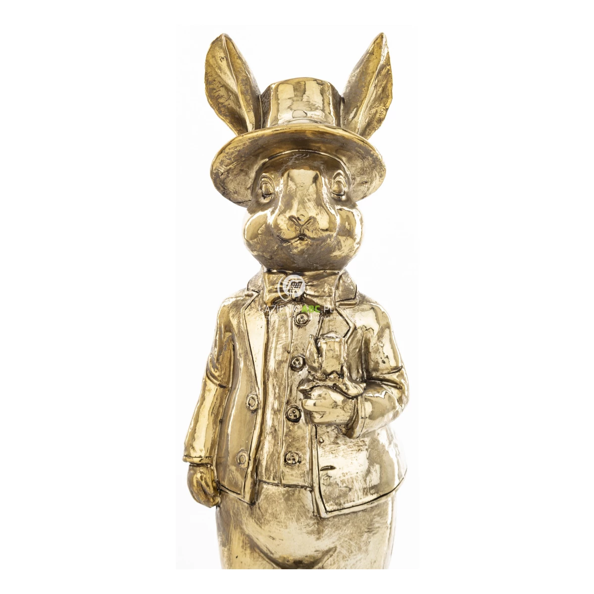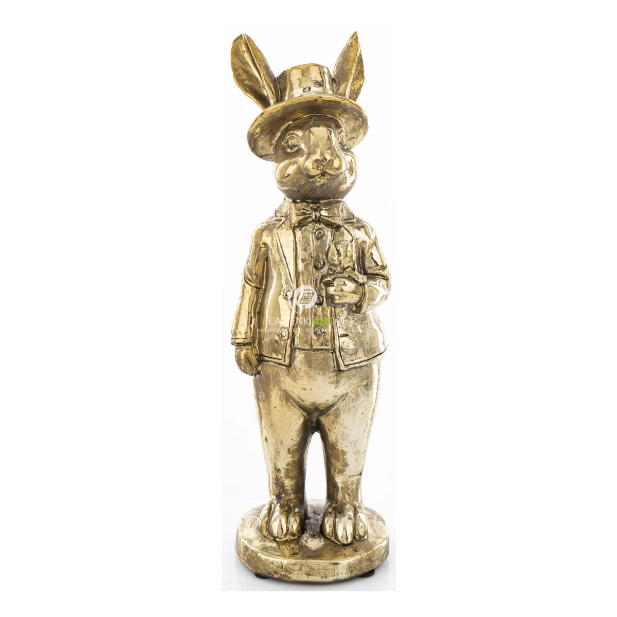 Figurka złoty królik z kapeluszem 39 cm Antique 164817