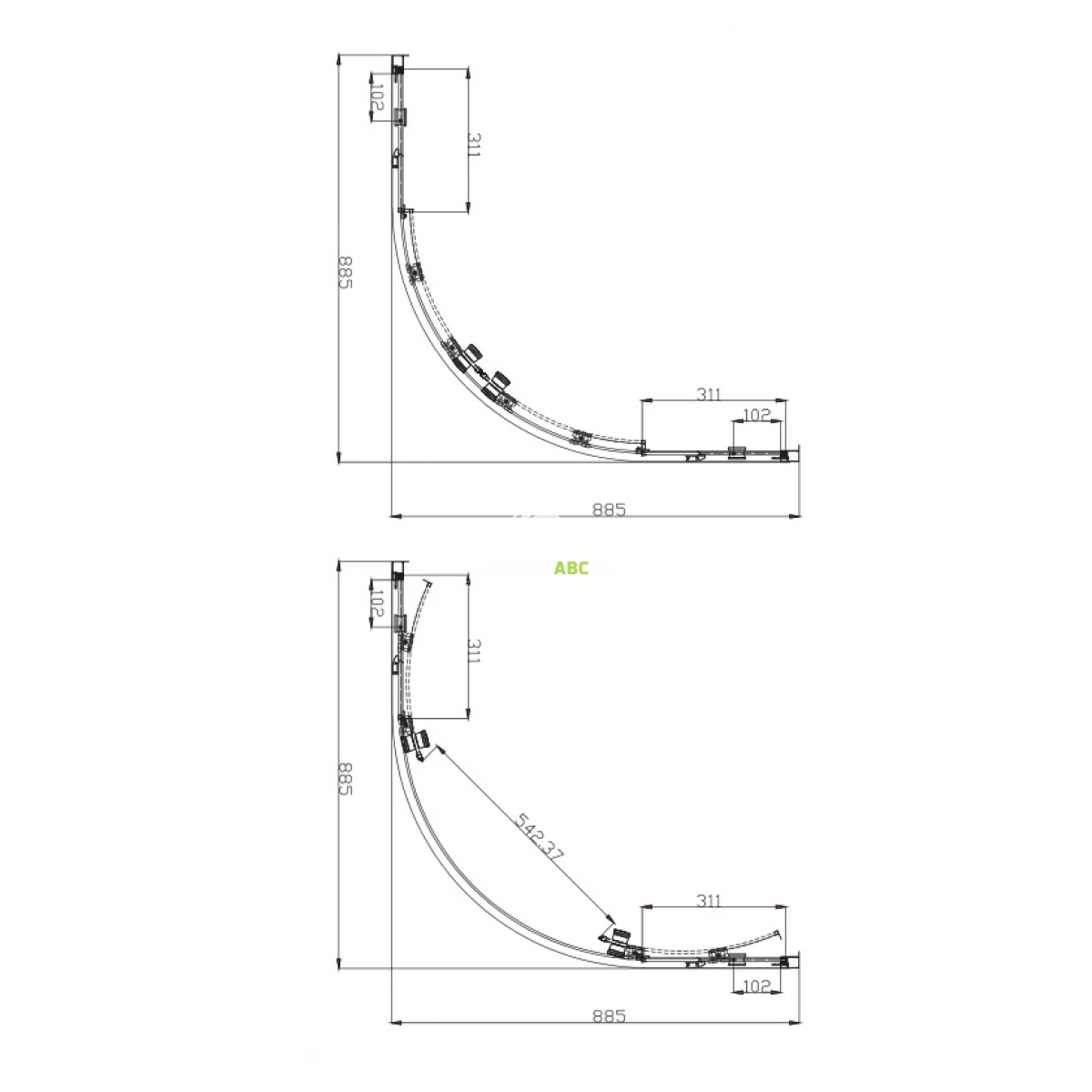 | Promień łuku | 550 mm |