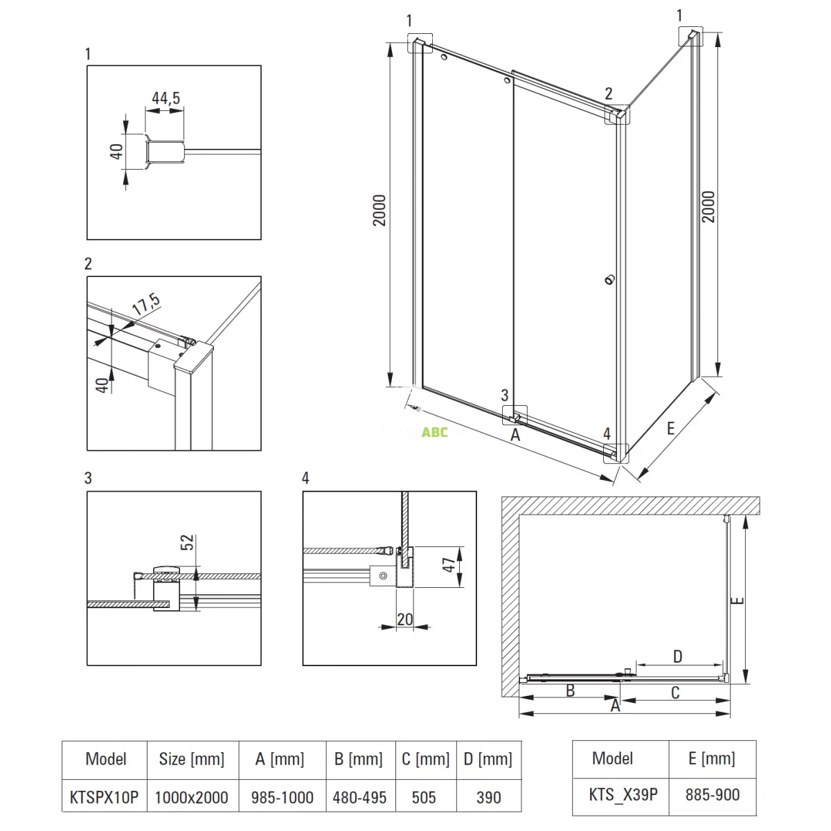 | Wariant | Drzwi 100cm + ścianka 90cm |