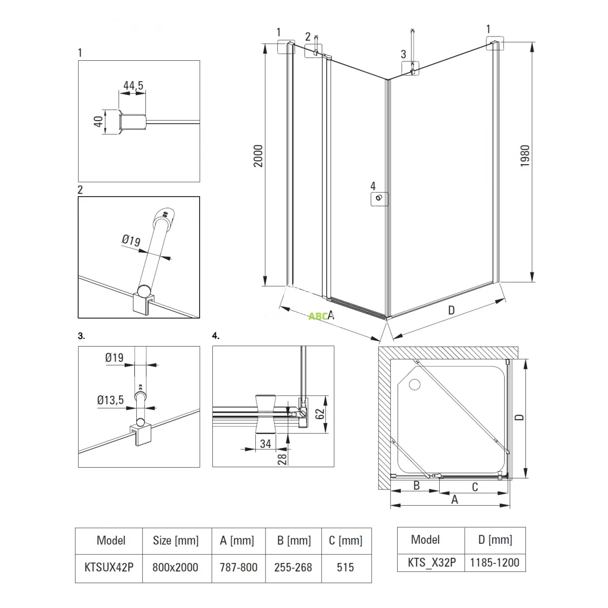 | Wariant | Ścianka 120cm + drzwi 80cm |