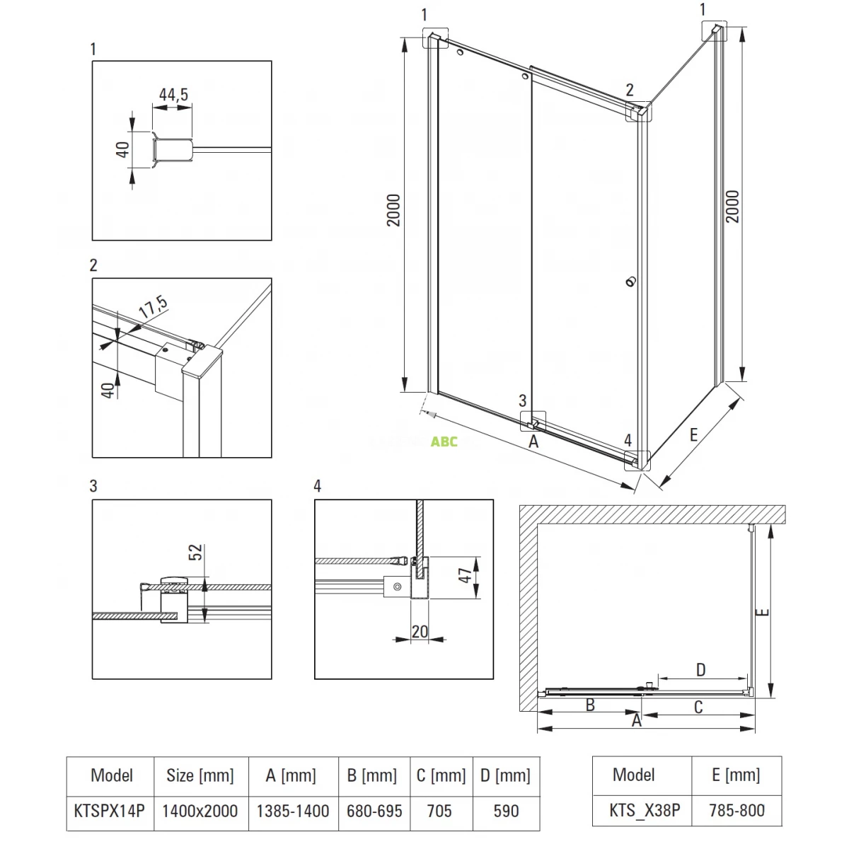 | Wariant | Drzwi 140cm + ścianka 80cm |