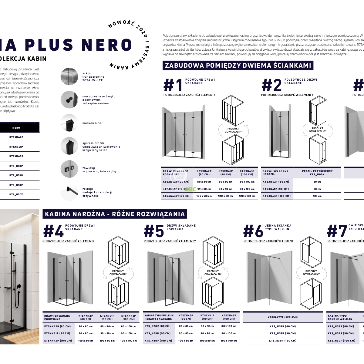 Duży wybór wymiarów i sposobów łączenia poszczególnych elementów pozwala na tworzenie wielu kombinacji zarówno samego kształtu kabiny, jak i dostosowywania go do pomieszczenia.